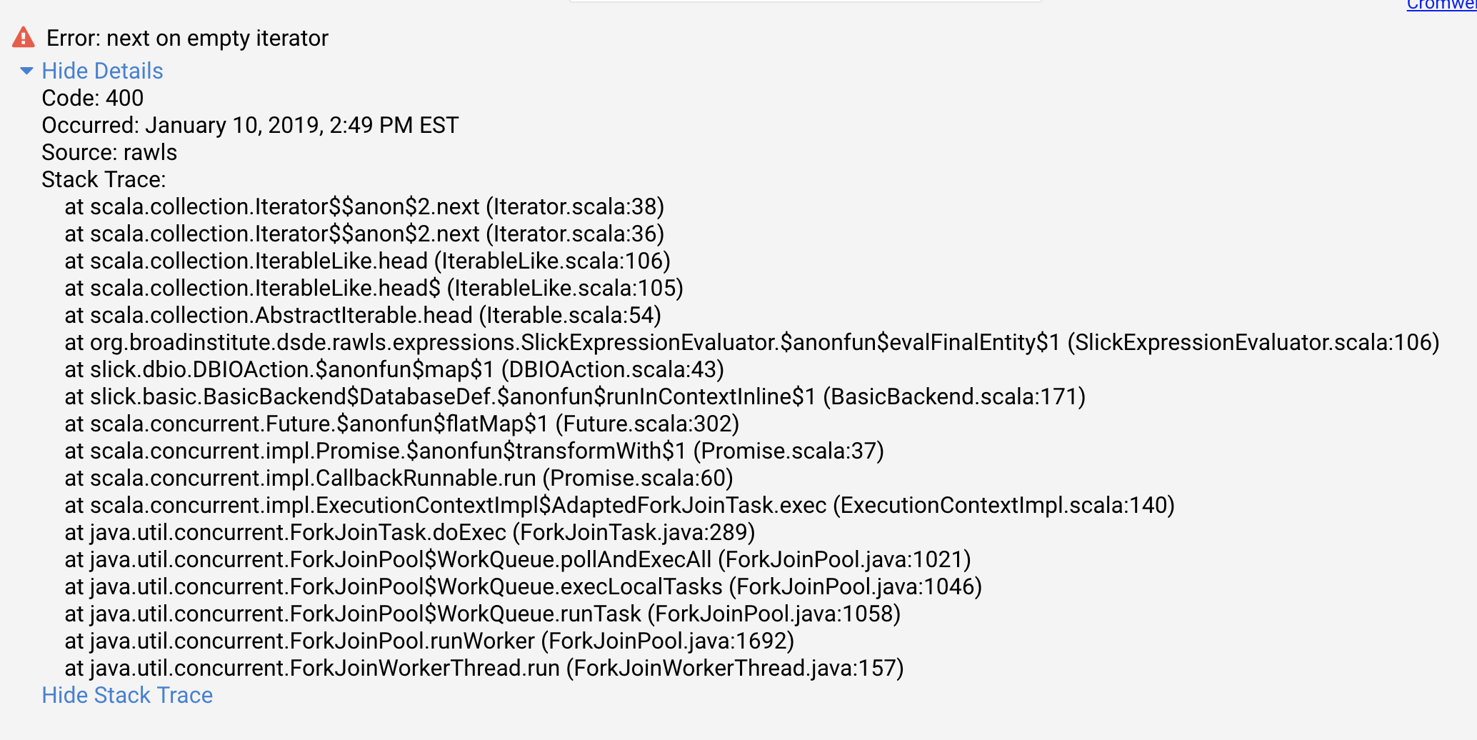 Jobs have been queued in Cromwell for a couple of hours for myself and multiple other users. The following error comes up when I tried to relaunch jobs to see if that would help (image)